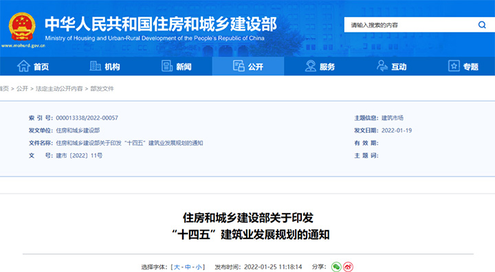 住建部官網(wǎng)發(fā)布《住房和城鄉(xiāng)建設部關于印發(fā)“十四五”建筑業(yè)發(fā)展規(guī)劃的通知》。其中主要任務之一就是要加快智能建造與新型建筑工業(yè)化協(xié)同發(fā)展。