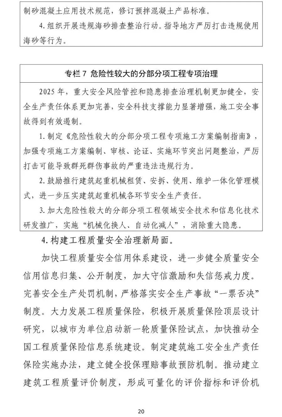 加大建筑產業(yè)互聯(lián)網(wǎng)平臺基礎共性技術攻關力度,編制關鍵技術標準、發(fā)展指南和白皮書。 開展建筑產業(yè)互聯(lián)網(wǎng)平臺建設試點,培育一批行業(yè)級、企業(yè)級、項目級建筑產業(yè)互聯(lián)網(wǎng)平臺,建設政府監(jiān)管平臺。 鼓勵建筑企業(yè)、互聯(lián)網(wǎng)企業(yè)和科研院所等開展合作,加強物聯(lián)網(wǎng)、大數(shù)據(jù)、云計算、人工智能、區(qū)塊鏈等新一代信息技術在建筑領域中的融合應用。 持續(xù)深化綠色建造試點工作,提煉可復制推廣經(jīng)驗。開展綠色建造示范工程創(chuàng)建行動,提升工程建設集約化水平, 實現(xiàn)精細化設計和施工。培育綠色建造創(chuàng)新中心,加快推進關鍵核心技術攻關及產業(yè)化應用。 研究建立綠色建造政策、技術、實施體系,出臺綠色建造技術導則和計價依據(jù),構建覆蓋工程建設全過程的綠色建造標準體系。 在政府投資工程和大型公共建筑中全面推行綠色建造。 積極推進施工現(xiàn)場建筑垃圾減量化,探索建立研發(fā)、設計、建材和部品部件生產、施工、資源回收再利用等一體化協(xié)同的綠色建造產業(yè)鏈。 應用數(shù)字化手段豐富方案創(chuàng)作方法,提高建筑設計方案創(chuàng)作水平。 鼓勵大型設計企業(yè)建立數(shù)字化協(xié)同設計平臺,推進建筑、結構、設備管線、裝修等一體化集成設計。 完善施工圖設計文件編制深度要求,提升精細化設計水平,為后續(xù)精細化生產和施工提供基礎。 探索人工智能技術在設計中應用。推進勘測過程數(shù)字化。 《“十四五”建筑業(yè)發(fā)展規(guī)劃》還提出: 深化建設工程企業(yè)資質管理制度改革,修訂出臺企業(yè)資質管理規(guī)定和標準,大幅壓減企業(yè)資質類別和等級,放寬建筑市場準入限制。 下放企業(yè)資質審批權限,推行企業(yè)資質審批告知承諾制和企業(yè)資質證書電子證照,簡化各類證明事項,實現(xiàn)企業(yè)資質審批 “一網(wǎng)通辦”。 加強企業(yè)資質與質量安全的聯(lián)動管理,實行“一票否決”制,對發(fā)生質量安全事故的企業(yè)依法從嚴處罰,并在一定期限內不批準其資質申請。 充分利用信息化手段加強資質審批后動態(tài)監(jiān)管,將違法違規(guī)行為、質量安全問題多發(fā)或存在重大質量安全隱患的企業(yè)列為重點核查對象,不符合資質標準要求的依法撤回。 進一步擴大招標人自主權,強化招標人首要責任。 積極推行采用“評定分離”方法確定中標人。 全面推行招投標交易全過程電子化和異地遠程評標,加大招投標活動信息公開力度,加快推動交易、監(jiān)管數(shù)據(jù)互聯(lián)共享。 依法嚴肅查處規(guī)避招標、串通投標、弄虛作假等違法違規(guī)行為,及時糾正通過設立不合理條件限制或排斥外地企業(yè)承攬業(yè)務的做法。 搭建市場價格信息發(fā)布平臺。 加快建立國有資金投資工程造價數(shù)據(jù)庫。 強化建設單位造價管控責任,嚴格施工合同履約管理,全面推行施工過程價款結算和支付。 鼓勵監(jiān)理企業(yè)參與城市更新行動、新型城鎮(zhèn)化建設、高品質綠色建筑建設。 鼓勵監(jiān)理企業(yè)通過政府購買服務方式參與工程質量安全監(jiān)督檢查。 加快推行投標擔保、履約擔保、工程質量保證擔保和農民工工資支付擔保。 大力推行電子保函。 加快完善工程總承包相關的招標投標、工程計價、合同管理等制度規(guī)定,落實工程總承包單位工程設計、施工主體責任。 以裝配式建筑為重點,鼓勵和引導建設內容明確、技術方案成熟的工程項目優(yōu)先采用工程總承包模式。 支持工程總承包單位做優(yōu)做強、專業(yè)承包單位做精做專,提高工程總承包單位項目管理、資源配置、風險管控等綜合服務能力,進一步延伸融資、運行維護服務。 在工程總承包項目中推進全過程 BIM 技術應用,促進技術與管理、設計與施工深度融合。 鼓勵建設單位根據(jù)實施效益對工程總承包單位給予獎勵。 完善注冊建筑師、勘察設計注冊工程師、注冊建造師、注冊監(jiān)理工程師和注冊造價工程師管理制度,進一步明確注冊人員權利、義務和責任。 推進職業(yè)資格考試,注冊、執(zhí)業(yè),繼續(xù)教育等制度改革,推行注冊執(zhí)業(yè)證書電子證照。 提高注冊人員執(zhí)業(yè)實踐能力,嚴格執(zhí)行執(zhí)業(yè)簽字制度,探索建立個人執(zhí)業(yè)保險制度。 在部分地區(qū)探索實行注冊人員執(zhí)業(yè)行為扣分制,扣分達到一定數(shù)量后限制執(zhí)業(yè)并接受繼續(xù)教育。 各省、自治區(qū)住房和城鄉(xiāng)建設廳,直轄市住房和城鄉(xiāng)建設(管)委,北京市規(guī)劃和自然資源委,新疆生產建設兵團住房和城鄉(xiāng)建設局,國務院有關部門建設司(局): 為指導和促進“十四五”時期建筑業(yè)高質量發(fā)展,根據(jù)《中華人民共和國國民經(jīng)濟和社會發(fā)展第十四個五年規(guī)劃和2035年遠景目標綱要》,我部組織編制了《“十四五”建筑業(yè)發(fā)展規(guī)劃》。現(xiàn)印發(fā)給你們,請結合實際認真貫徹落實。 住房和城鄉(xiāng)建設部 2022年1月19日 (此件公開發(fā)布)