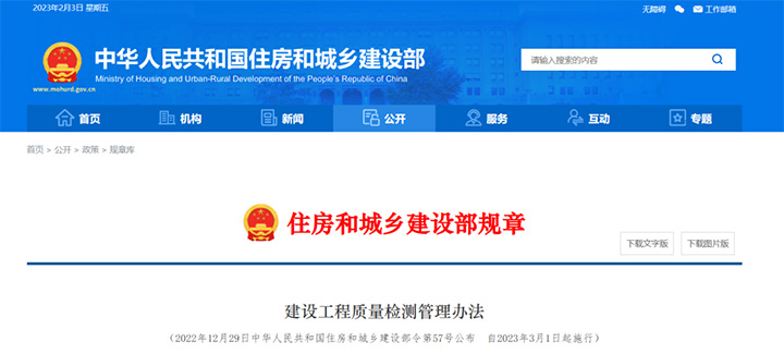 第五十條 本辦法自2023年3月1日起施行。2005年9月28日原建設(shè)部公布的《建設(shè)工程質(zhì)量檢測(cè)管理辦法》(建設(shè)部令第141號(hào))同時(shí)廢止。